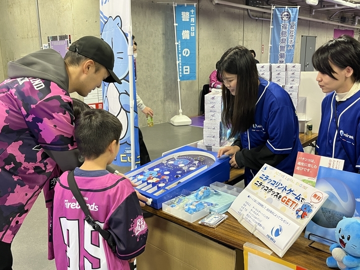 株式会社ニラクは、2025年11月1日(土)、2日(日)の2日間、福島県郡山市の宝来屋ボンズアリーナで開催された福島ファイヤーボンズvs岩手ビックブルズ戦にマッチデースポンサーとしてブースを出展し、地域交流を図りました。