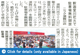 - The NIRAKU Sukagawa hall was closed for business for the 34th Sukagawa City Shakado River National Fireworks Festival, and the car parking lot was opened without charge to the general public.